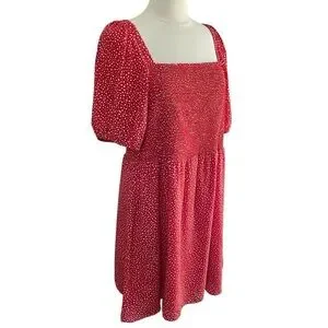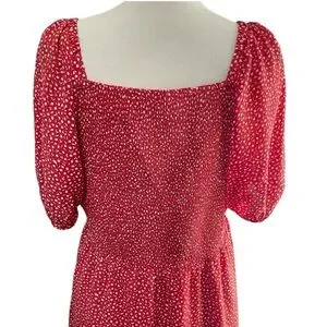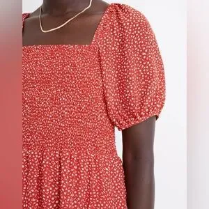 MADEWELL Silk Lucie Puff-Sleeve Smocked Mini Dress in Park Picnic, XXL $158