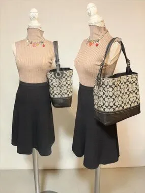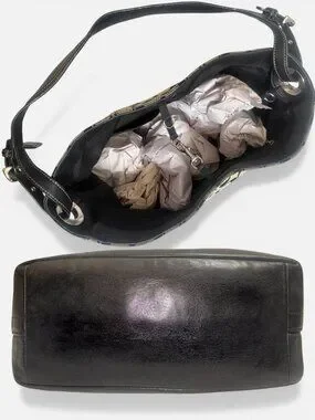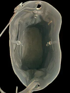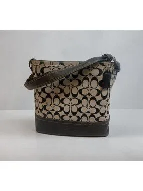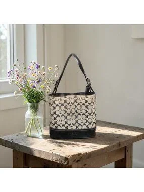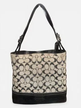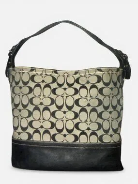 Coach Signature Bucket Tote F12518 Black Canvas Leather Shoulder Bag Carryall