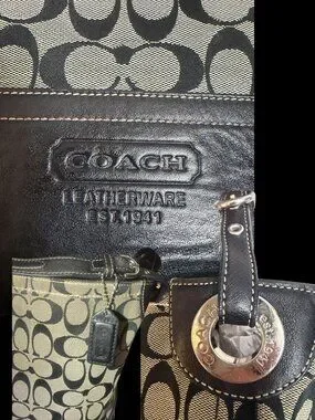 The Coach Signature Tote F12518 combines signature canvas with leather trim. A great go-to when on-the-go!