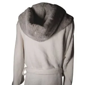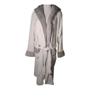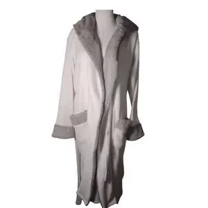 Plush Fuzzy Gray/White Bath Robe Size L/XL