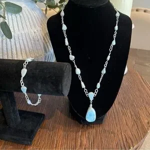 Rare Larimar Gemstone Necklace with matching bracelet