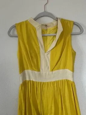 VINTAGE YELLOW LINEN MAXI DRESS Garment Workers Union Made 6 8