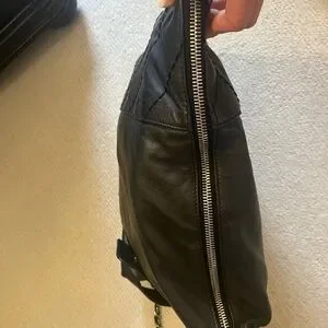 Classic CHANEL shoulder tote in smooth black leather. Features signature interlocking CC logo on front flap. Chain-link shoulder strap woven with leather. Clean, timeless silhouette for day or evening.