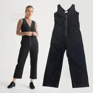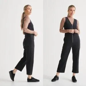 DUER Performance Denim Jumpsuit M | Aged Black Zip-Front Utility One-Pc Sold Out