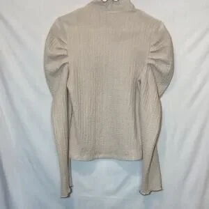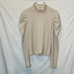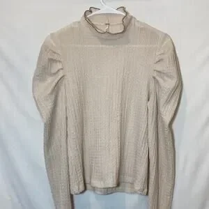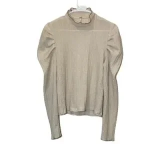 Free People Ela Mock Neck Ruffled Sheer Ruffle Puff Sleeve Blouse Size M