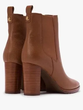 LAUREN RALPH LAUREN Mylah Il Polo Tan Tumbled Leather Ankle Boots