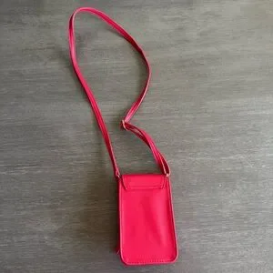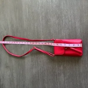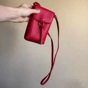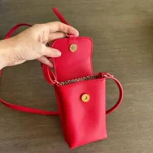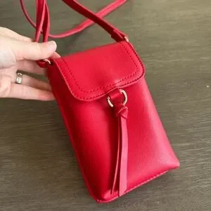 Red Crossbody Structured Rectangle Purse Bag Faux Leather Gold
