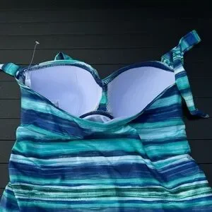 Dive into fun with this Disney one-piece swimsuit, featuring a charming blue and white color scheme. The halter-style design boasts a flattering sweetheart neckline and playful ruffle hem, perfect for making a splash at the pool or beach.