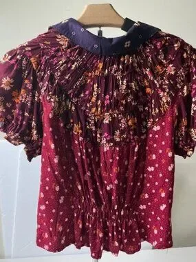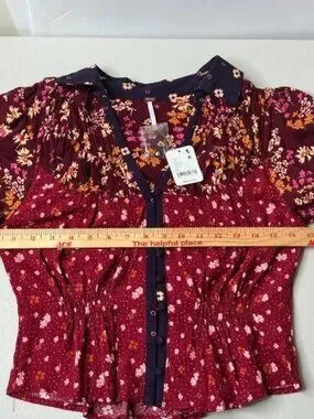 NWT Free People Bella Blouse in Earth Red Combo Colorway Size X-Small