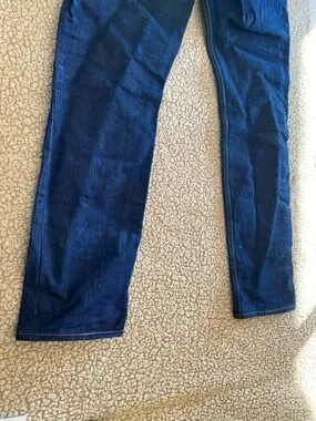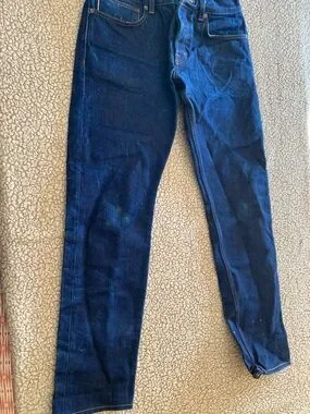 Slim straight men's jeans in dark blue denim. Features classic five-pocket styling and contrast stitching. Versatile everyday jean for casual and smart-casual looks.