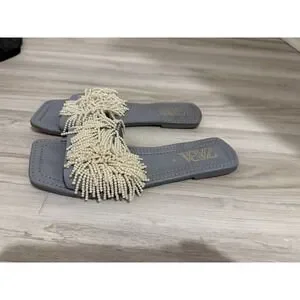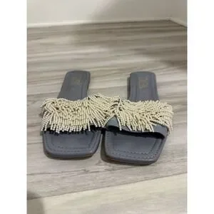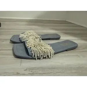 Zara Women's Light Blue Slides Sandals EU Sz 38 US Sz 7 Pearl Detailing Feminine