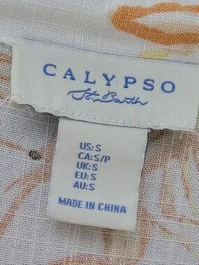 Calypso St Barts Linen Tropical Lobster Papaya Top Small boxy Relaxed