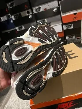 Lightweight adidas Originals sneakers in beige with bright orange accents. Mesh and synthetic upper for breathability. Cushioned white midsole for comfort. Lace-up closure for a snug fit. Versatile casual style.