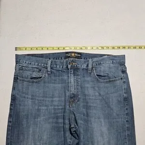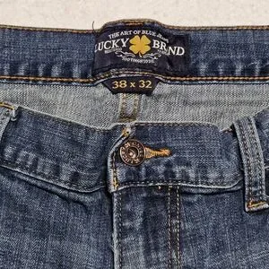 Lucky Brand 410 Jean Men 38x32* (I measure them at approximately 30 inches in length) Blue Athletic Slim Fit Cotton Blend Stretch. Pants are in good, gently used condition. No rips or tears. Please reference photos for details and measurements. They have plenty of use left!