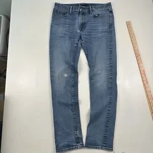 Uniqlo Kaihara Japanese Selvedge Jeans Mens 34x34 Slim Straight Light Wash Blue