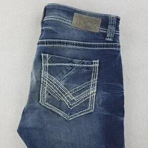 Buckle Black "1 Fit" (slim/straight model) stretch jeans, men's size labeled "34x34" with actual real specs of 36 waist and 34 inseam. I've included exact measurements, so you'll know if this will fit you or not. Ships safely in a sealed padded polymailer :)