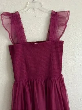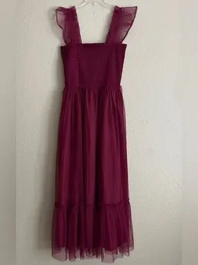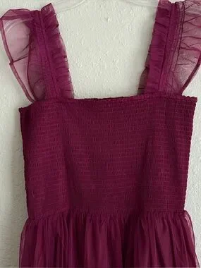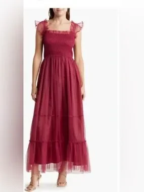 Melloday Strappy Smocked Tiered Chiffon Maxi Dress in wine. Long tulled dress. Inner lined.