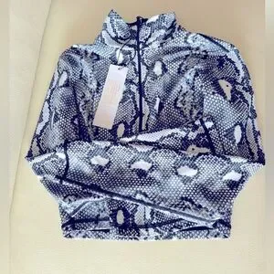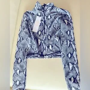 Adam Selman Python print cropped top sweatshirt zipper S $180 NEW