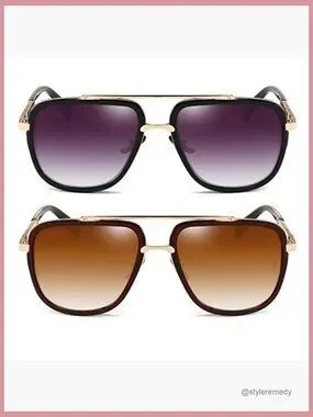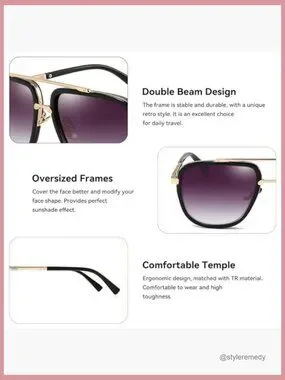 Oversized Square Aviator Sunglasses Gold Alloy Frame UV 400 Protection
