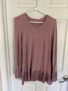 LOGO Lori Goldstein Tunic Mauve Logo Long sleeve Pleated Hem Top Knit Shirt