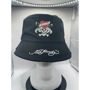 Ed Hardy Loves Kills Slowly Logo Adjustable Bucket Hat Unisex New