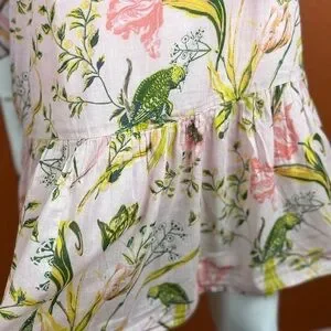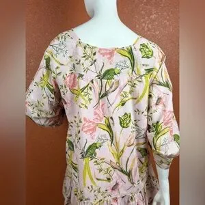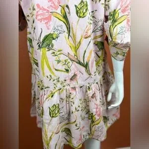 Happy Nature Pink Multicolor Floral Cotton Cottagecore Mini Dress S Medium. G#56