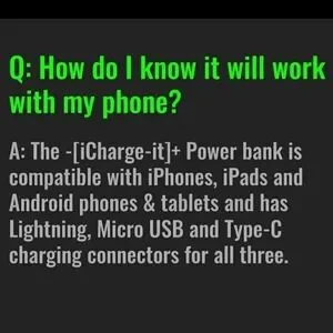 Compatible with iPhone, Android phones, iPad, & tablet and has micro USB & Type-C charging connectors for all.