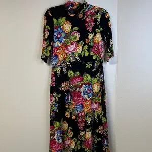 Anthropologie ett:twa Coreyell Black Floral Turtleneck Short Sleeve Dress S