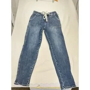 Judy Blue Jogger Womens 5/27 Blue High Rise Pull On Drawstring Stretch Denim