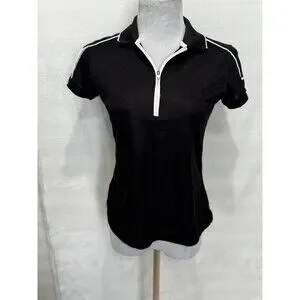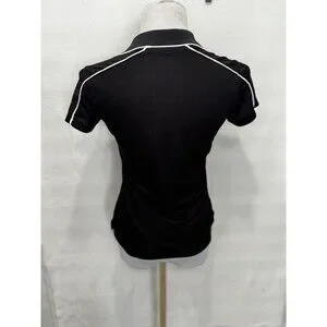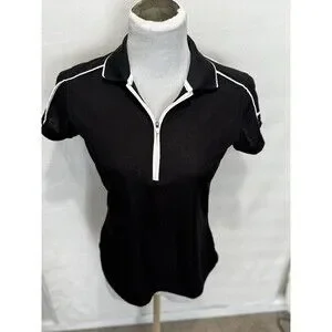 Slazenger golf shirt womens Sz S Black White Trim Short Sleeve Polo Zippered Fro