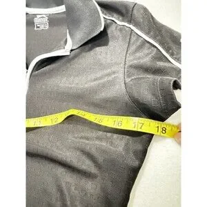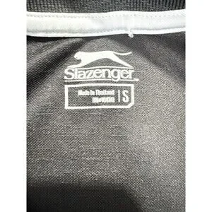 The Slazenger golf shirt for women in size small features a classic black polo design with white trim and a zippered front. This shirt is specifically designed for golf activities, making it a perfect and stylish addition to any woman golfer's wardrobe. With its short sleeves and casual sleeve type, this shirt offers both comfort and functionality on the golf course.
