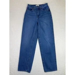 Madewell Baggy Straight Jeans Womens 24 Blue Medium Wash High Rise Relaxed Denim
