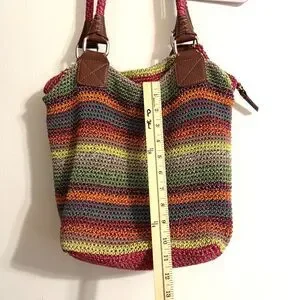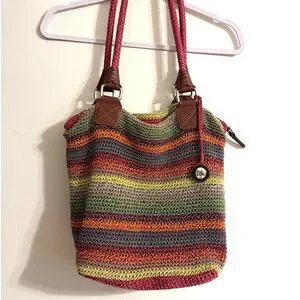 The Sak Cambria Crochet Boho Knit Hobo Tote Bag Purse Rainbow Multicolor Striped