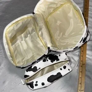 Cosmetic bag and pencil or brush pouch and cow plush in excellent condition