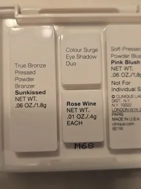 Clinique compact set with glossy white case and reflective silver mirror case. Clean, minimalist branding. Easy to carry and store.