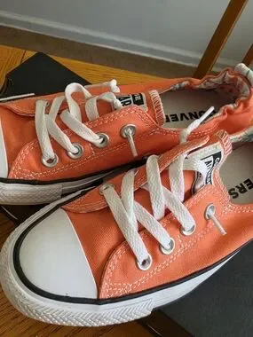 Converse Kids Orange Canvas Low Top Sneakers with White Laces