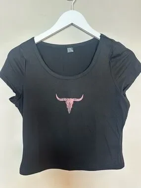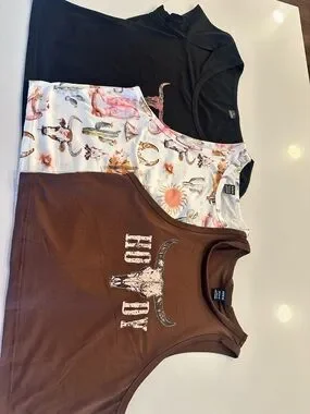 SHEIN Black, White & Brown Western Graphic Crop Tank Tops