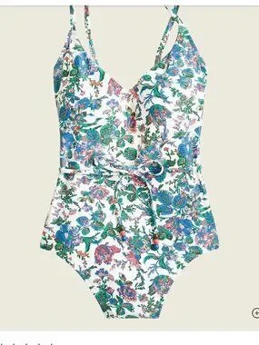 J Crew Size 2 One Piece Swimsuit Eco Rounded English Garden Floral Beach Vacay