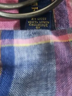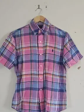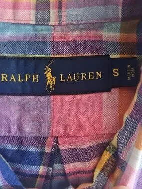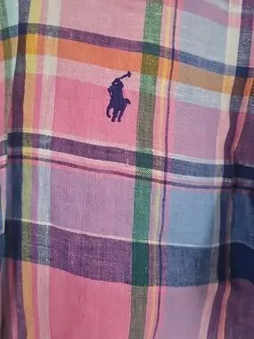 Ralph Lauren Linen Plaid Button Down Shirt Mens Small Pony Logo Summer