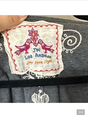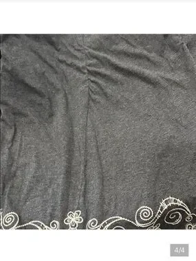 Scoop neckline and three-quarter sleeves. White embroidered floral medallion and border details. Lightweight, flowy silhouette. Elegant casual look.SEE picture for condition