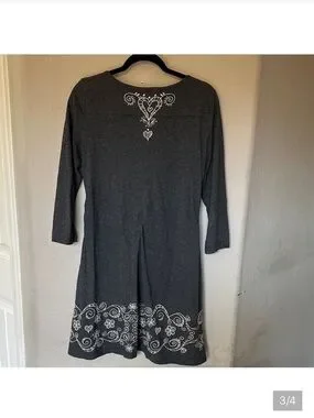 Johnny Was Dark Gray Long Sleeve Embroidered Tunic Dress