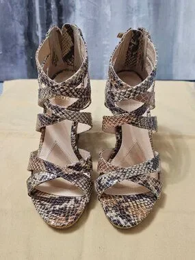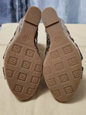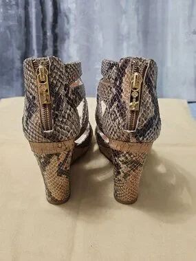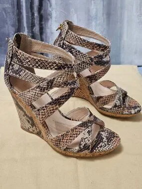 NWT Isola Snake Print Strappy Wedge Sandals Cork Heel Back Zip Neutral Size 6