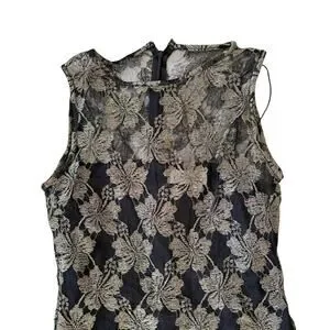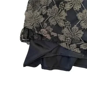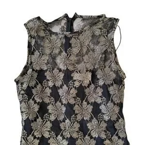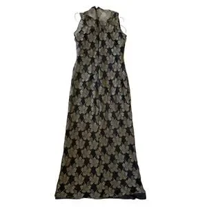Vintage 1980s Column Dress Sheer Floral Overlay Black Slip Metallic Gold Black 6