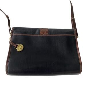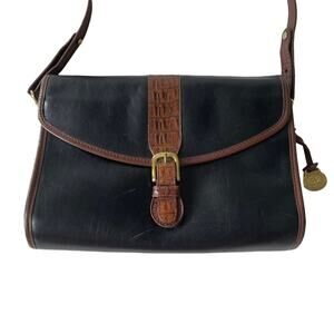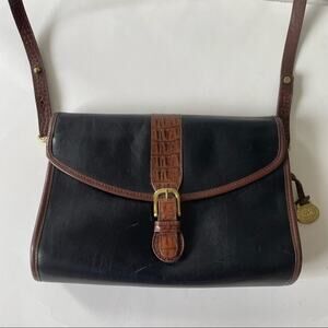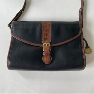 Vintage 1980s Brahmin Shoulder Bag Smooth and Croc Leather Black Brown GUC