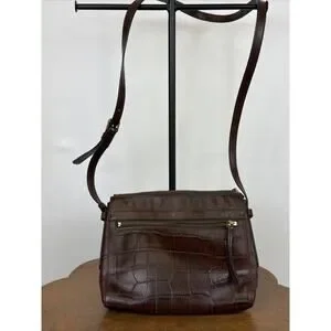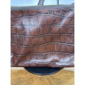 Fossil Brown Leather Pattern Small Crossbody Handbag Adjustable Strap #1662