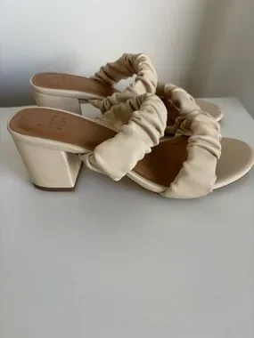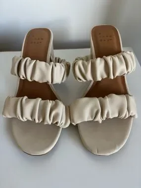 a new day Ruched Double-Strap Slide Sandals in Cream