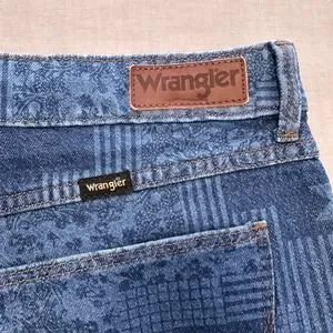 Wrangler Women's 12 Vintage Short Blue Patchwork Star Print Denim Shorts