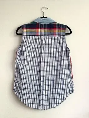 90’sCasey & Max Women's Patchwork Plaid Sleeveless Button Tank with Denim Collar