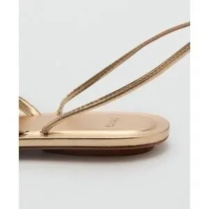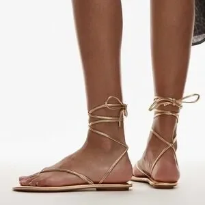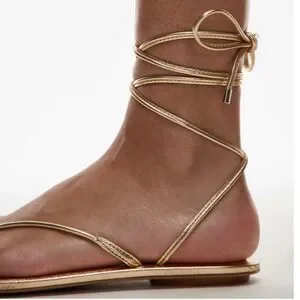 Mango MNG Womens Gold Metallic Wraparound Lace Up Flat Sandals Size 38