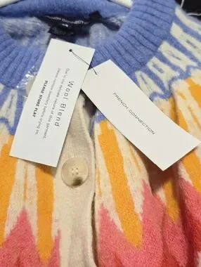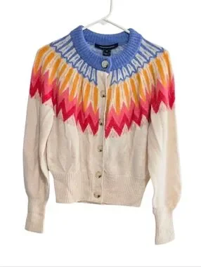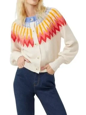 French Connection Neya Fair Isle Cardigan Ivory Wool Blend Size XS